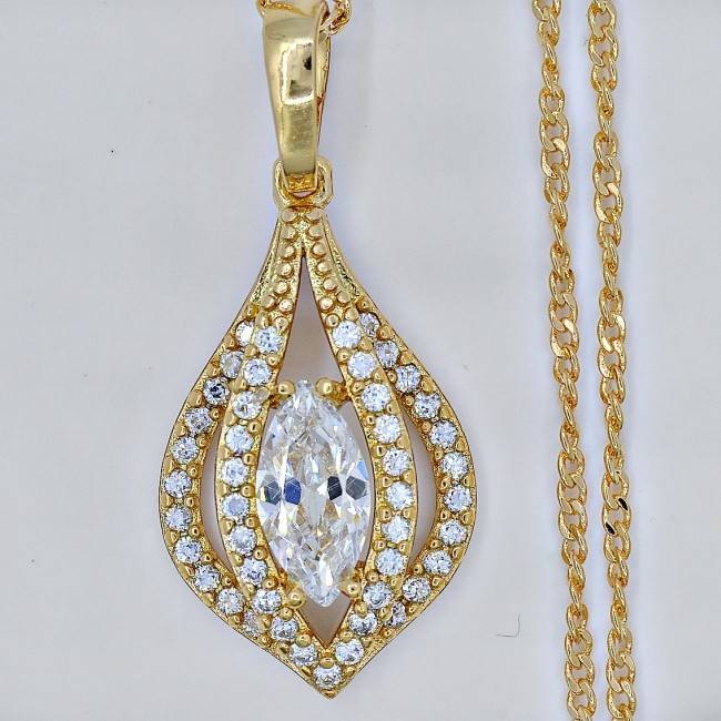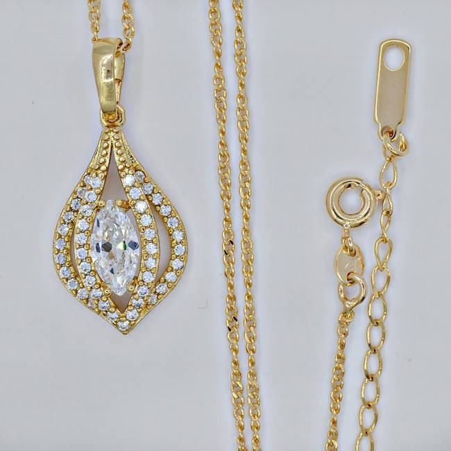 Кулон с белым фианитом оптом, натуральная позолота модель 31027