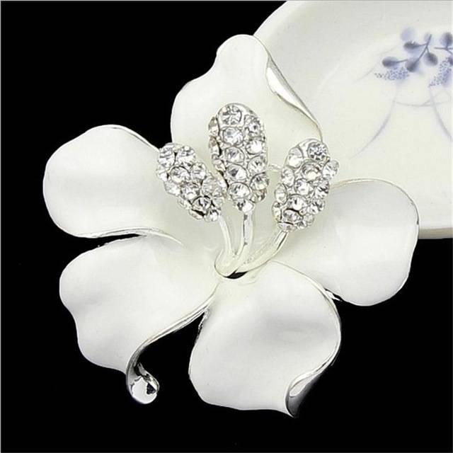 Блистательная брошь Цветок с фианитами оптом ВС 151-38-белый