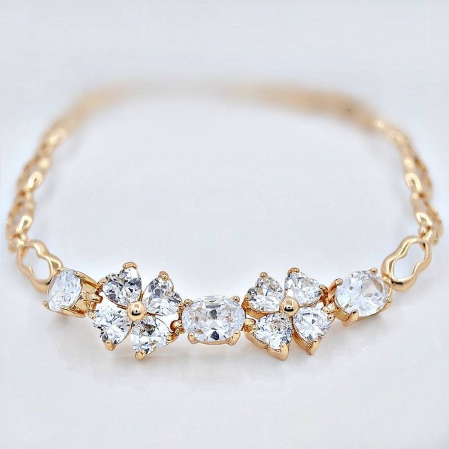 Браслет с белыми фианитами оптом, натуральная позолота модель 72168