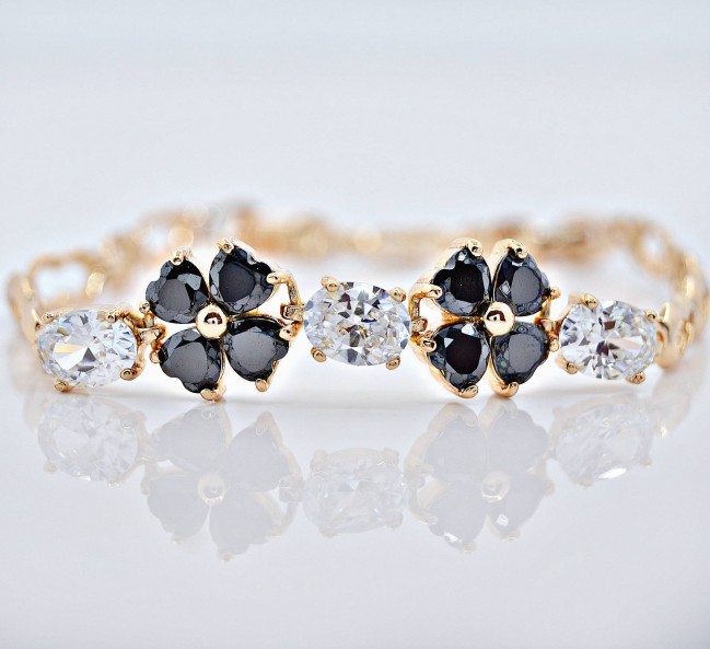 Браслет с черными фианитами оптом, натуральная позолота модель 72168