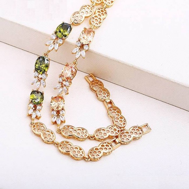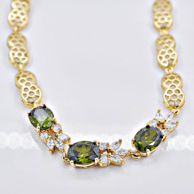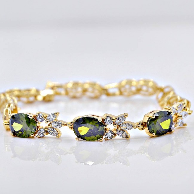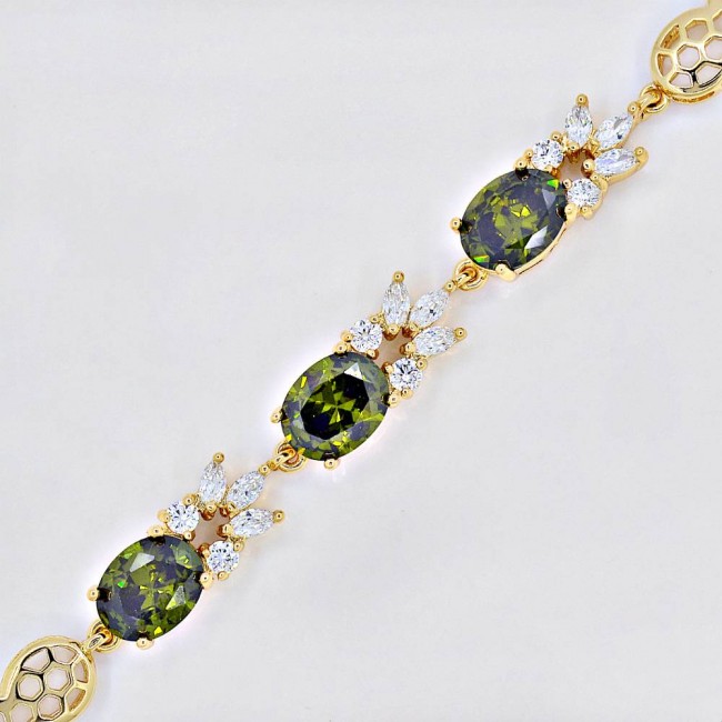 Браслет с зелеными фианитами оптом, натуральная позолота модель 73458
