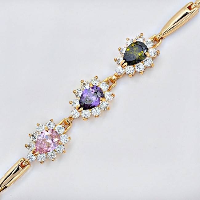 Браслет с разноцветными темными фианитами оптом, натуральная позолота модель 71229