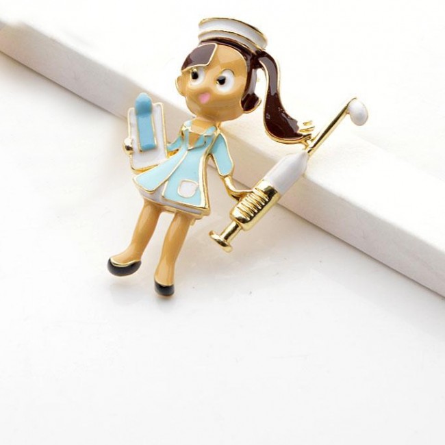 Брошь позолоченная- "Медсестра"-голубой 8687