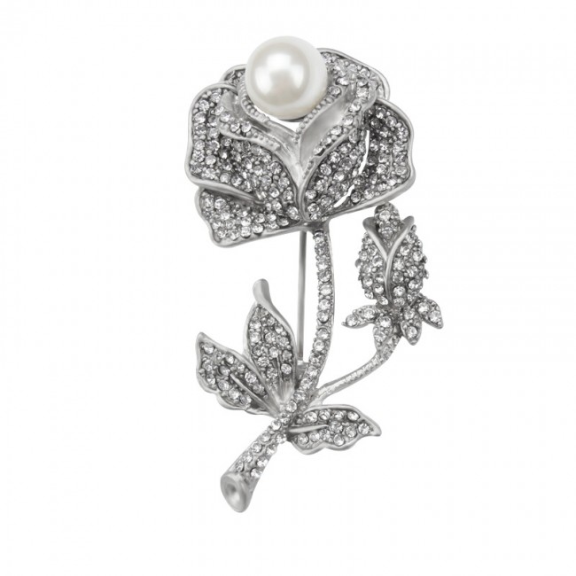 Брошь "Роза" 6724 - белое золото