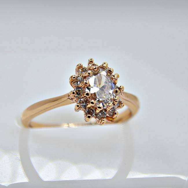 Кольцо в форме цветка оптом, фианит прозрачный, модель 11357.