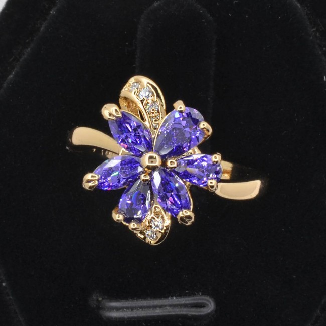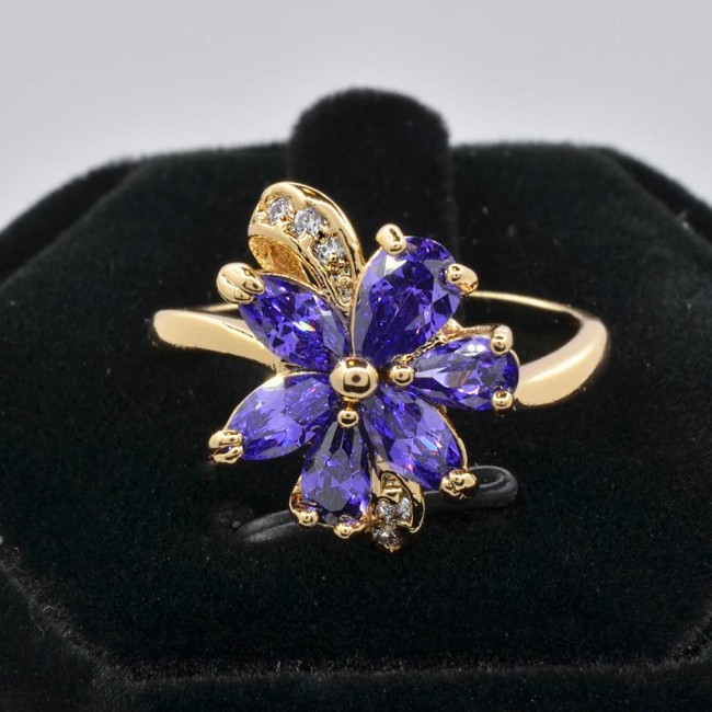 Чудесное позолоченное кольцо с фианитами 18К 10-1131-фиолетовый