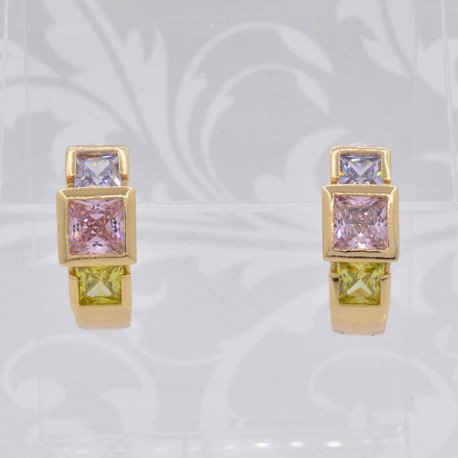 Серьги с фианитами цвета мультиколор