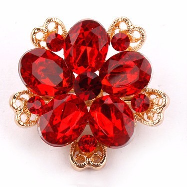 Брошь в форме цветка с красными фианитами