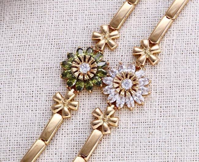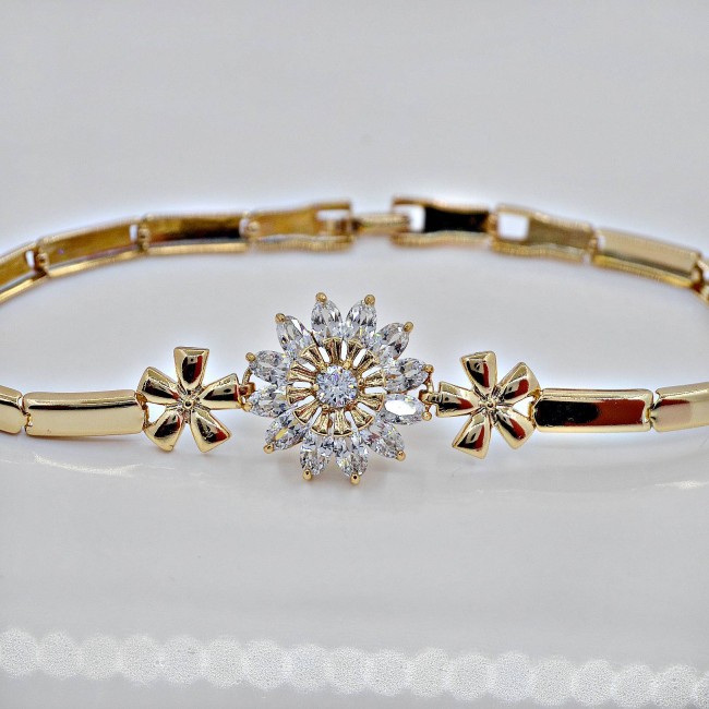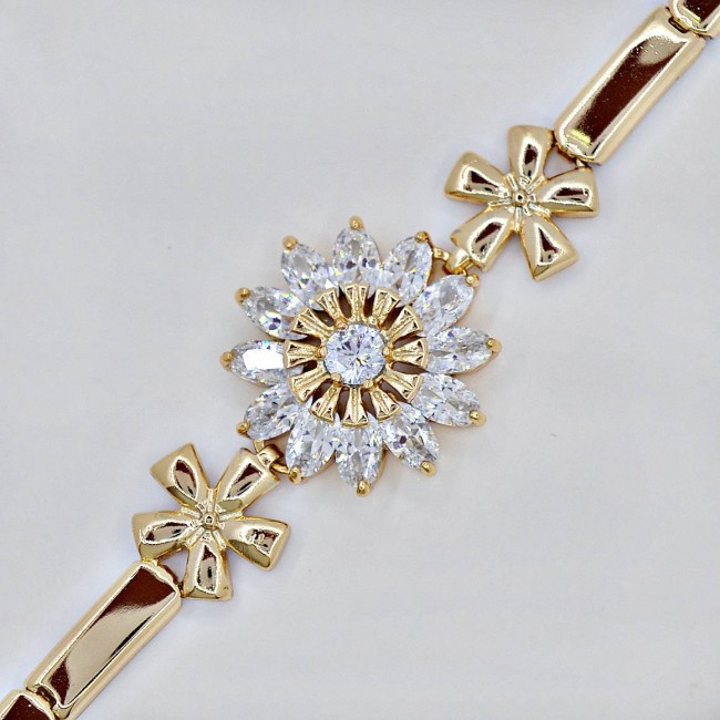 Цветочный браслет с белым фианитом оптом, натуральная позолота модель 72794