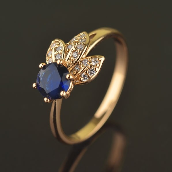 Изящное позолоченное кольцо с фианитами 10-1167-синий