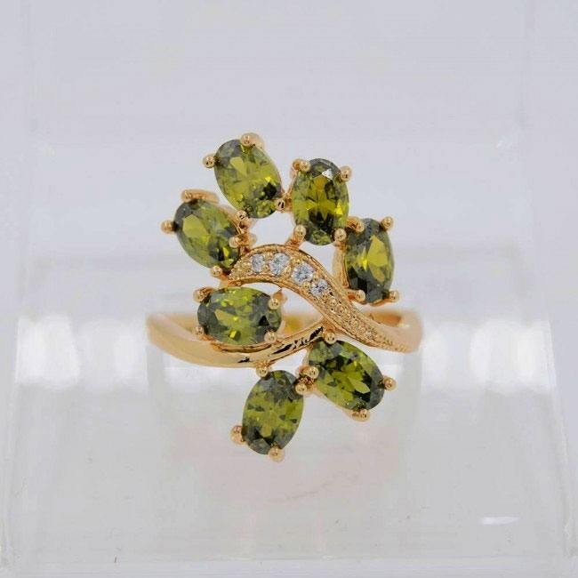 Изящное позолоченное кольцо с фианитами ХР 10-1080-зеленый