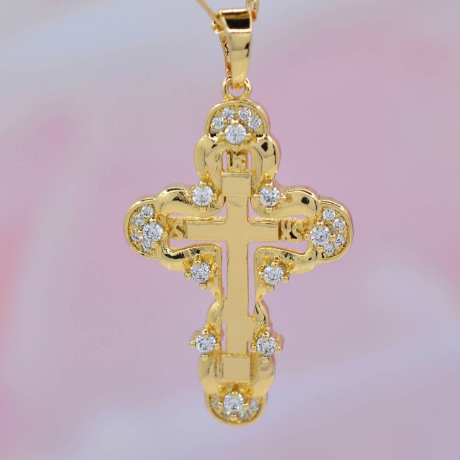 Изумительный крестик с фианитами в позолоте 10-3009
