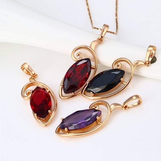 Кулон с крупным черным фианитом оптом, натуральная позолота модель 31763