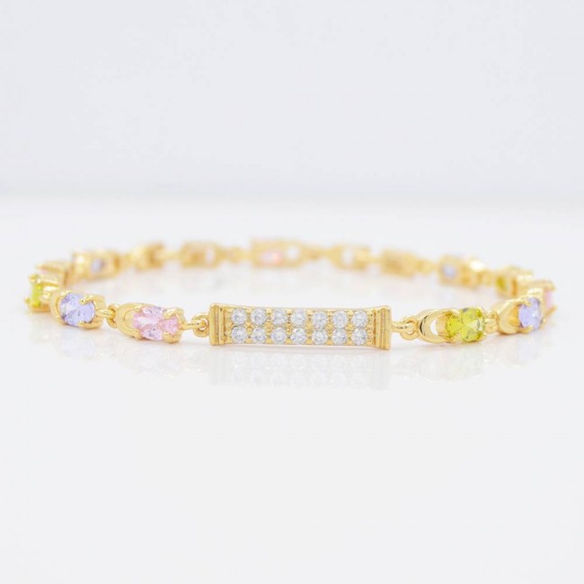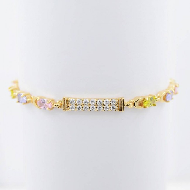 Браслет с фианитами цвета мультиколор