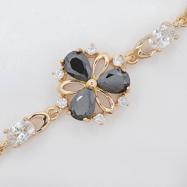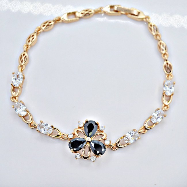 Браслет с черным фианитом оптом, натуральная позолота модель 71319