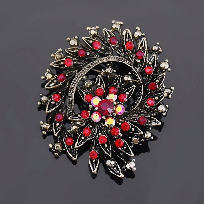 Брошь с красными фианитами