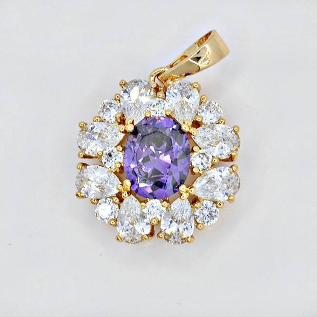 Кулон с фиолетовым фианитом оптом, натуральная позолота модель 31216