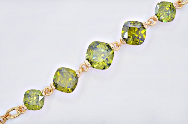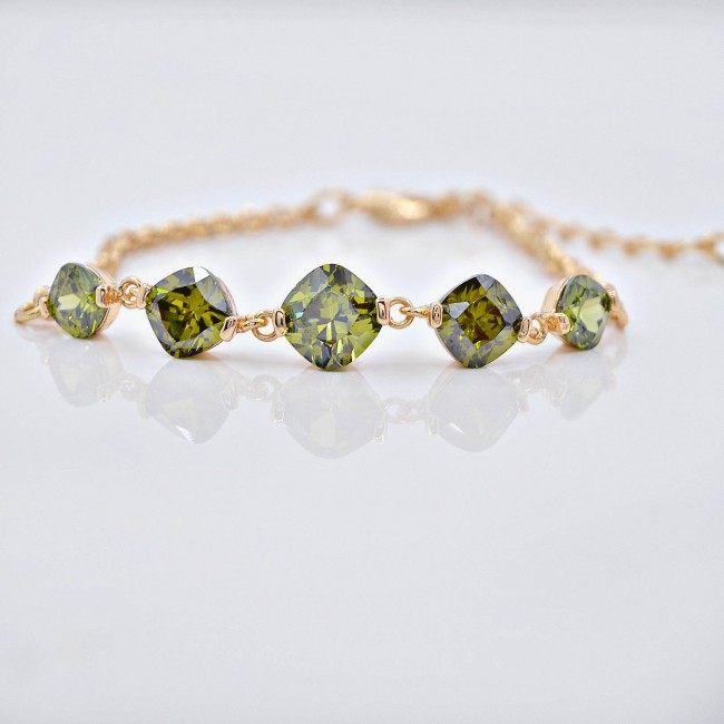 Браслет с зелеными фианитами оптом, натуральная позолота модель 71255