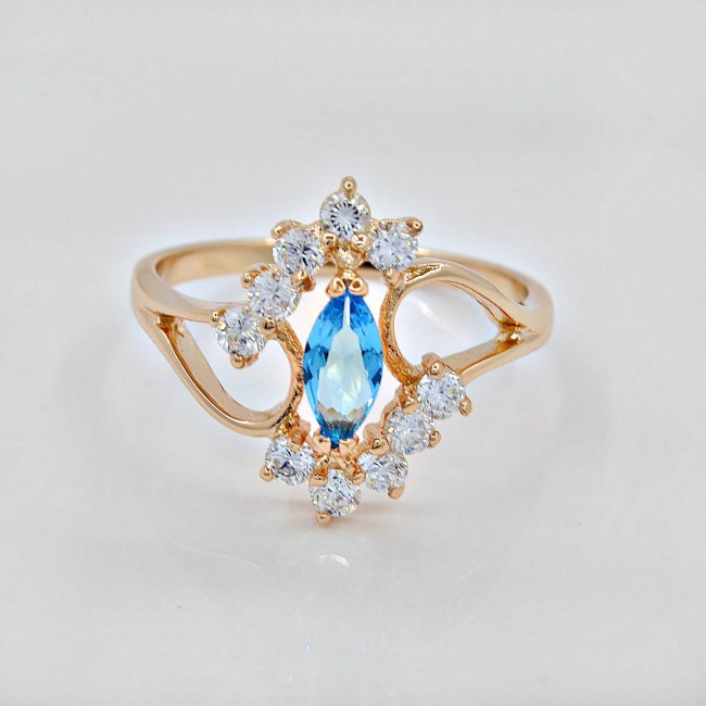 Кольцо с узорами и голубым фианитом оптом, модель 12381