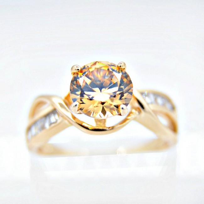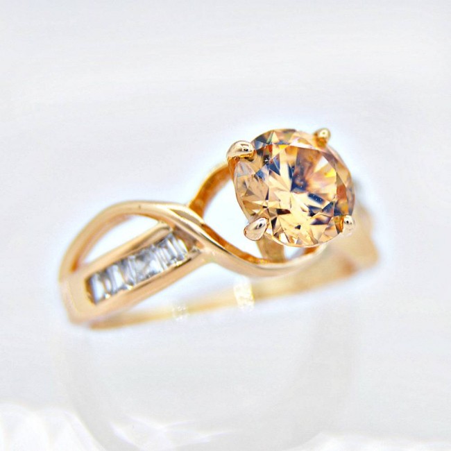 Кольцо с фианитом цвета шампань оптом, модель 13201