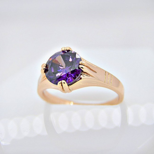 Кольцо с крупным фиолетовым фианитом оптом, модель 12114