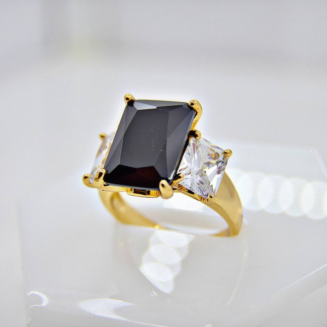 Кольцо с черным фианитом оптом, модель 10839