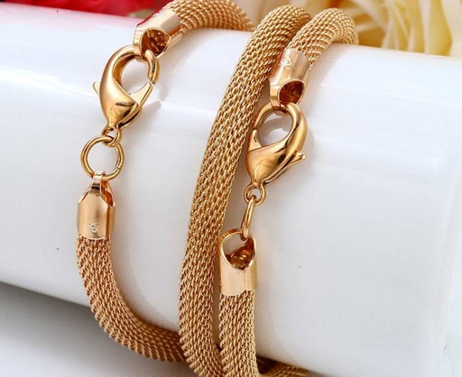 Комплект с цепочкой и браслетом оптом, натуральная позолота модель 62988