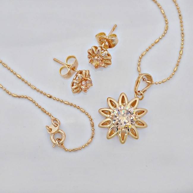 Комплект с фианитами цвета шампань оптом, натуральная позолота модель 61225