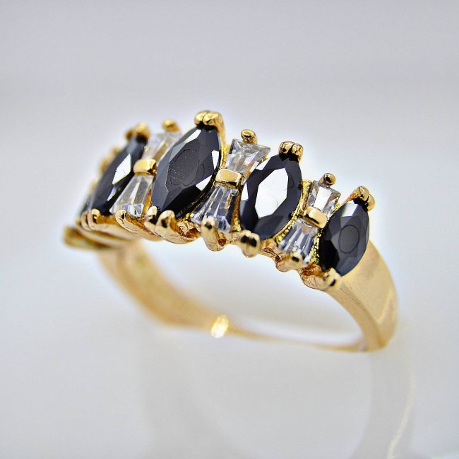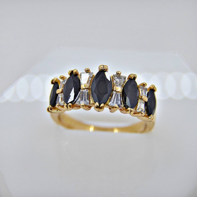 Кольцо с черными фианитами оптом, модель 11701.