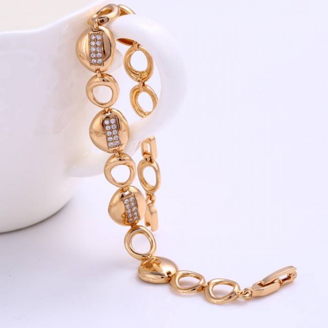 Изысканный браслет с белыми фианитами оптом, натуральная позолота модель 72225