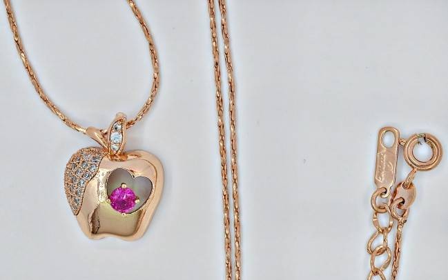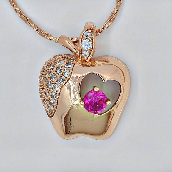 Кулон в форме яблока с малиновым фианитом оптом, натуральная позолота модель 31144
