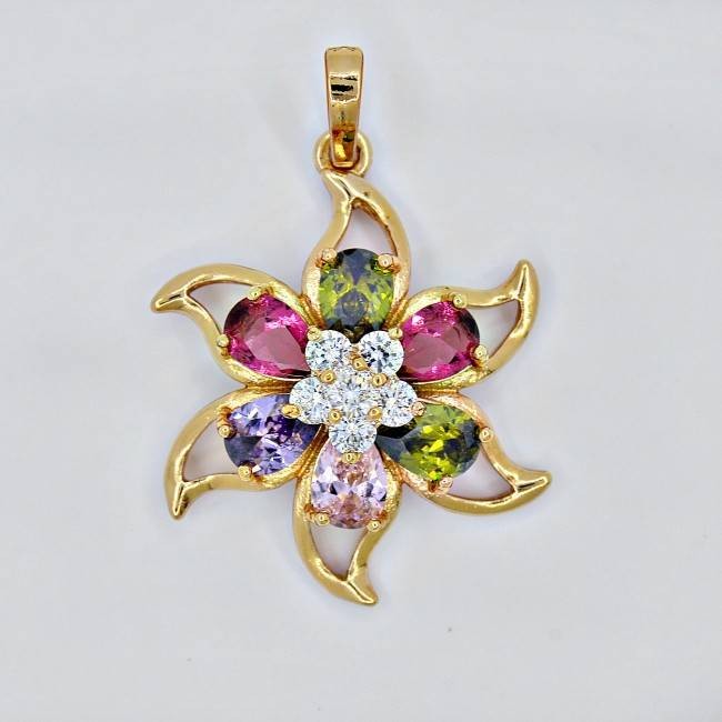 Кулон с разноцветными фианитами оптом, натуральная позолота модель 31338