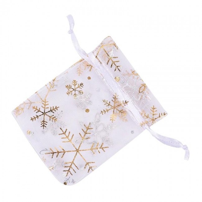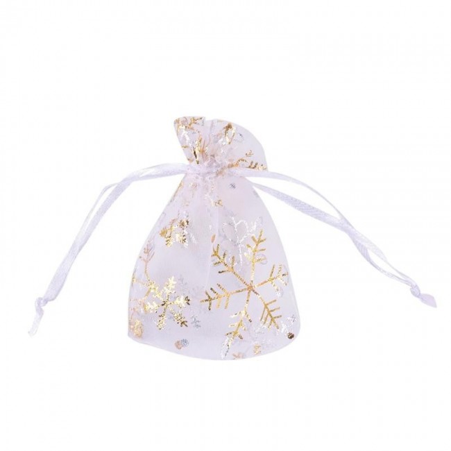 Мешочек 9*7 белый из органзы для бижутерии " Золотые снежинки "