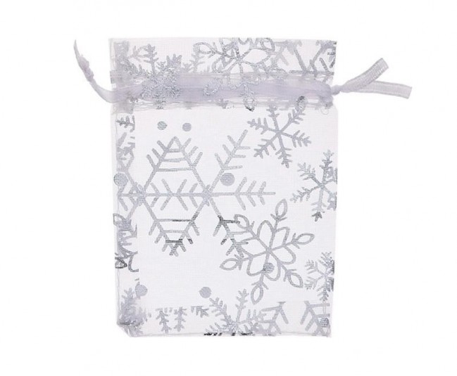 Мешочек 12*9 белый из органзы для бижутерии " Снежинки"