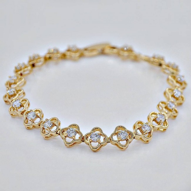 Браслет с белыми фианитами оптом, натуральная позолота модель 72988
