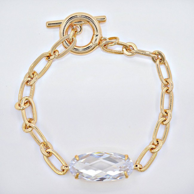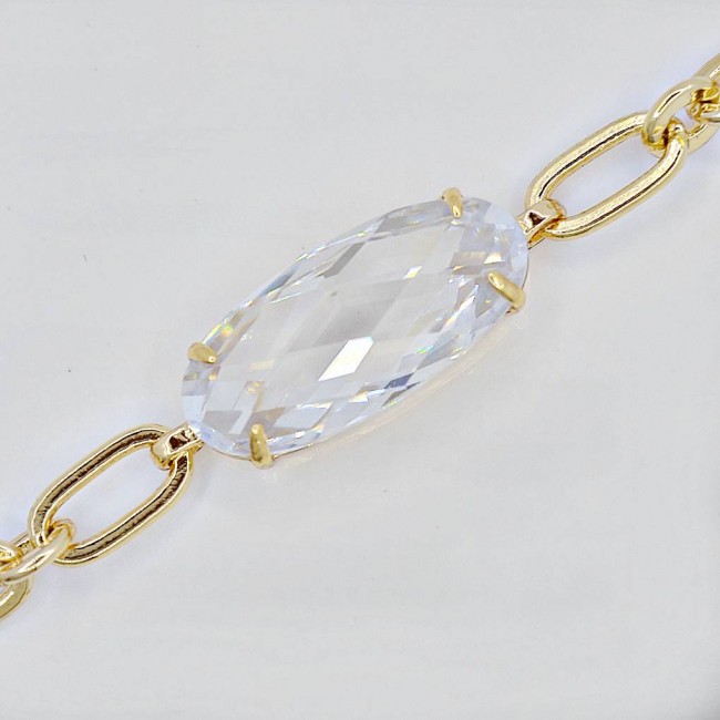 Браслет с белым фианитом оптом, натуральная позолота модель 71363