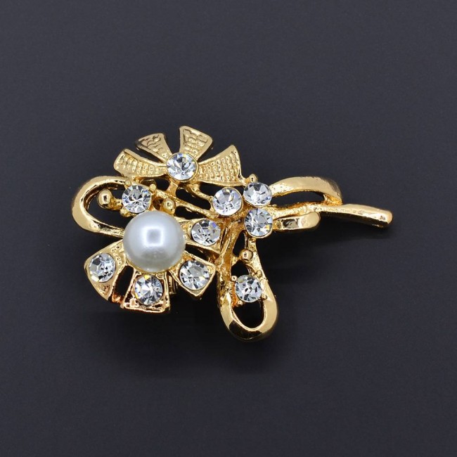 Нарядная брошь с фианитами и жемчугом оптом 201-02