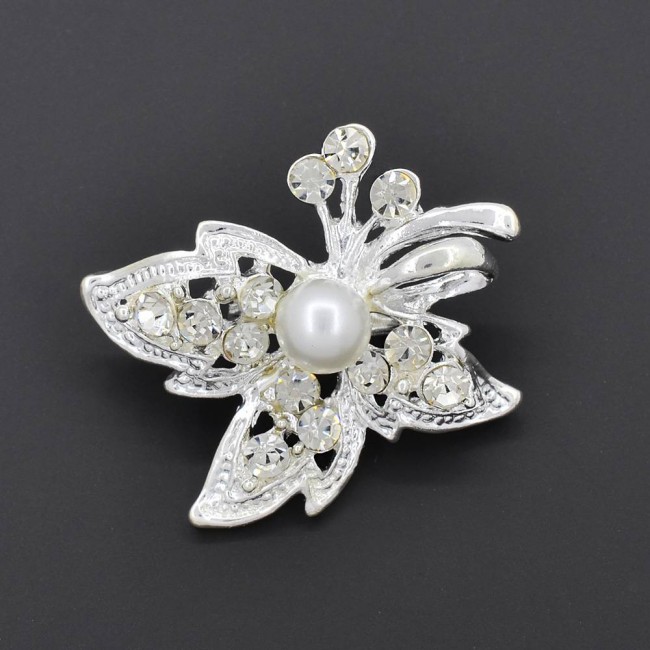 Необыкновенная брошь с фианитами и жемчугом MG 667-33