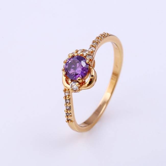 Кольцо с фиолетовым фианитом и мелкими прозрачными искусственными камнями оптом, модель 11854