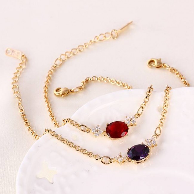 Браслет с красными фианитами оптом, натуральная позолота модель 71208