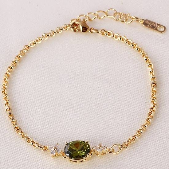 Браслет с зелеными фианитами оптом, натуральная позолота модель 71208