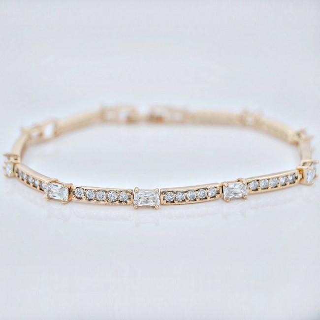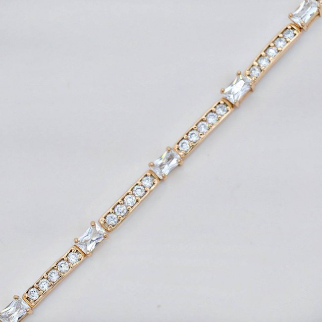 Браслет с белыми фианитами оптом, натуральная позолота модель 72664