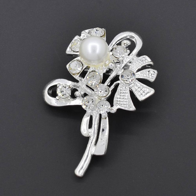 Очаровательная брошь с фианитами и жемчугом DW 741-36
