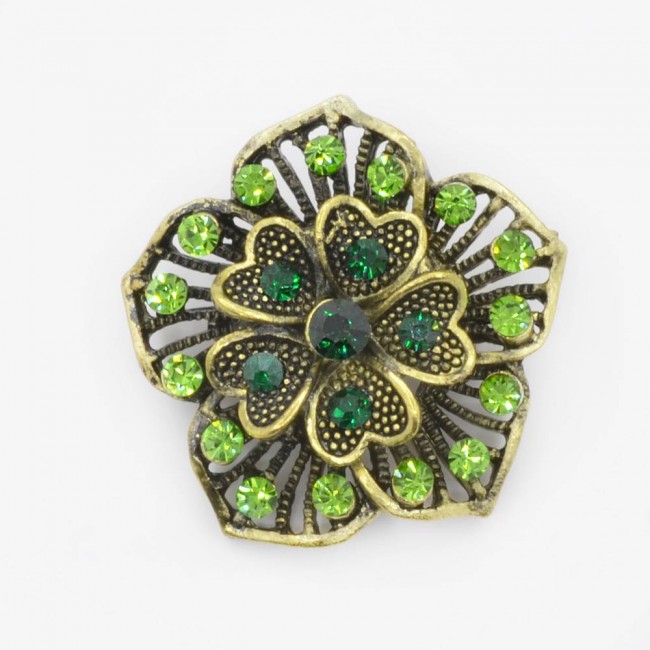 Брошь с зелеными фианитами