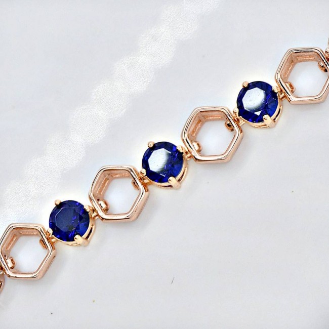 Браслет с синим фианитом оптом, натуральная позолота модель 72387