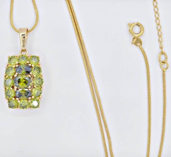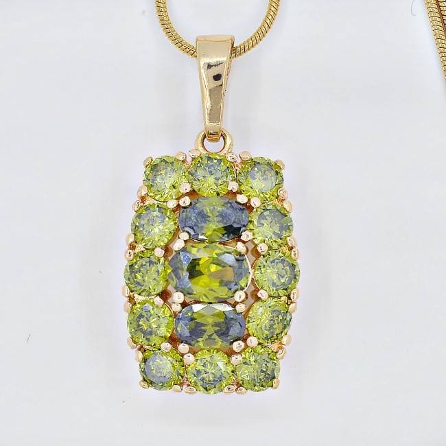 Кулон с зелеными фианитами оптом, натуральная позолота модель 30965