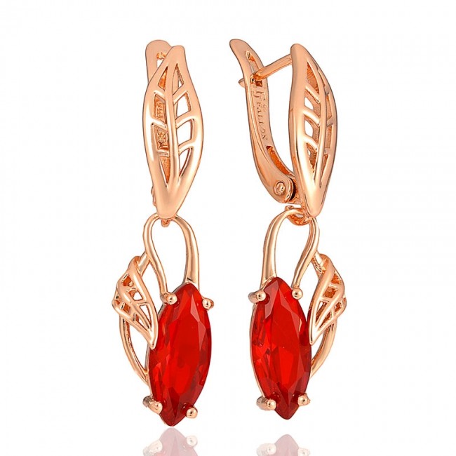 Позолочені сережки Fallon 82202725-червоні фіаніти