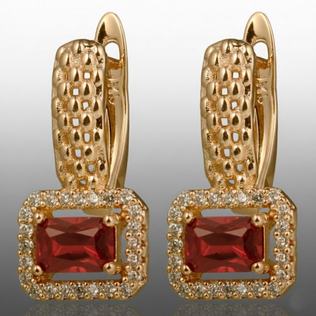 Позолочені сережки Xuping 24667-червоний фіаніт is available for purchase in increments of 1