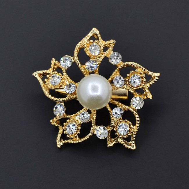 Позолоченная брошь с фианитами и жемчугом 143-57