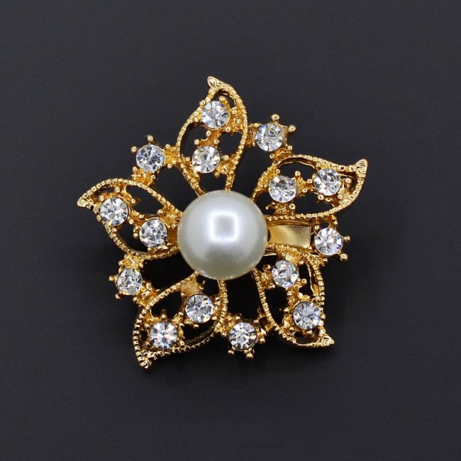 Позолоченная брошь с фианитами и жемчугом 254-67